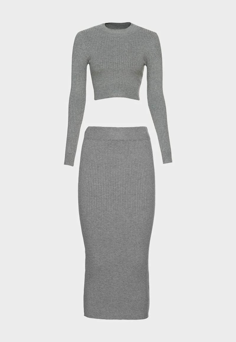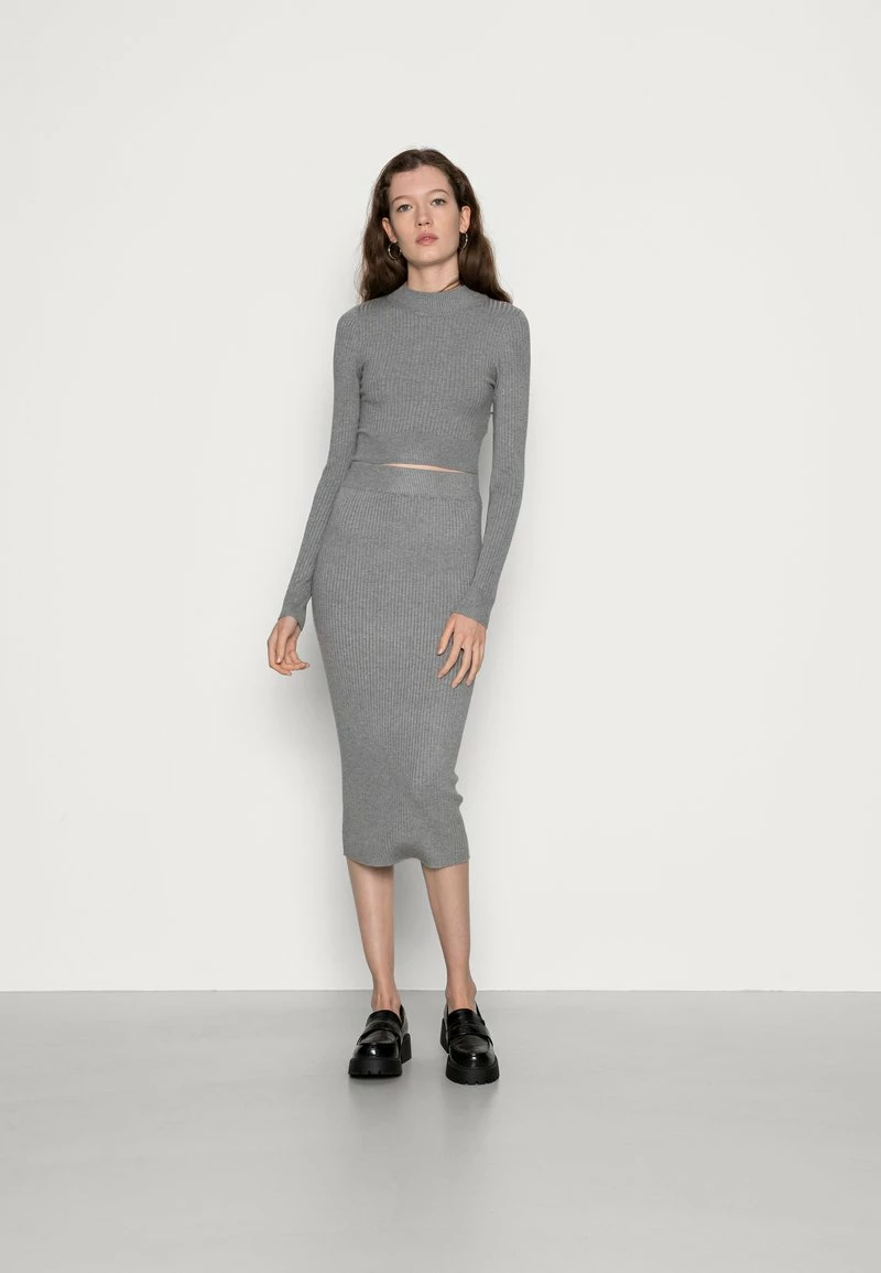 Even&Odd Damen PERKIN CROPPED SKIRT SET – Strickpullover – Mottled Grey