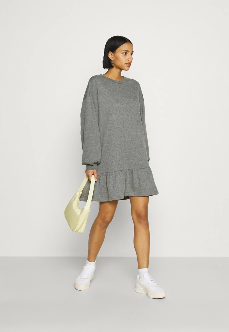 Even&Odd Damen SWEAT – Mini Volant Dress – Freizeitkleid – Mottled Grey